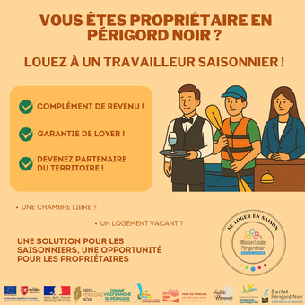 Toutes les infos sur le dispositif d'appui au logement de saisonniers porté par la Mission Locale du Périgord Noir et ses partenaires.